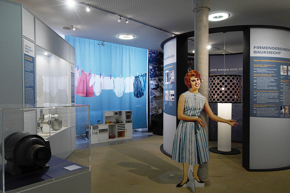 Die Sonderausstellung spannt den Bogen über die erste Waschmaschine zu den vielfältigen Aktivitäten des Familienunternehmens, welches weltbekannt wurde durch den Slogan: „Bauknecht weiß, was Frauen wünschen“.