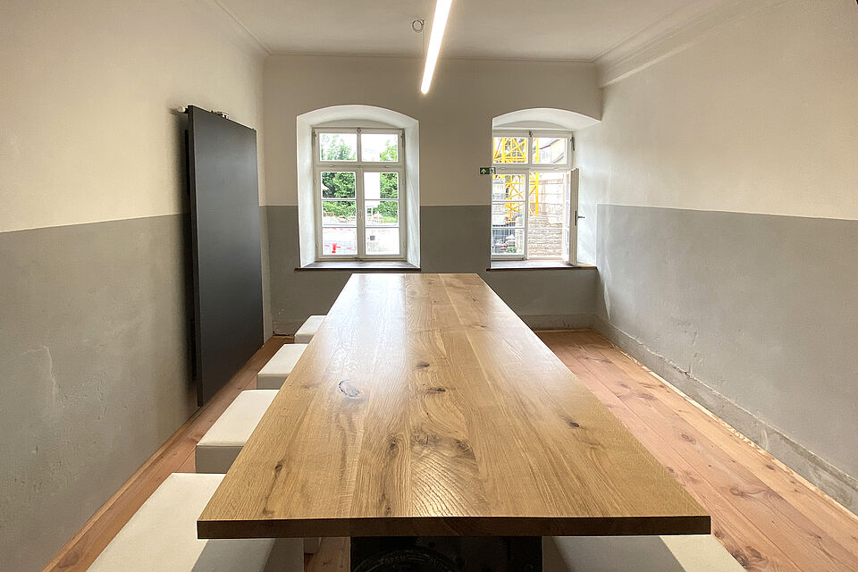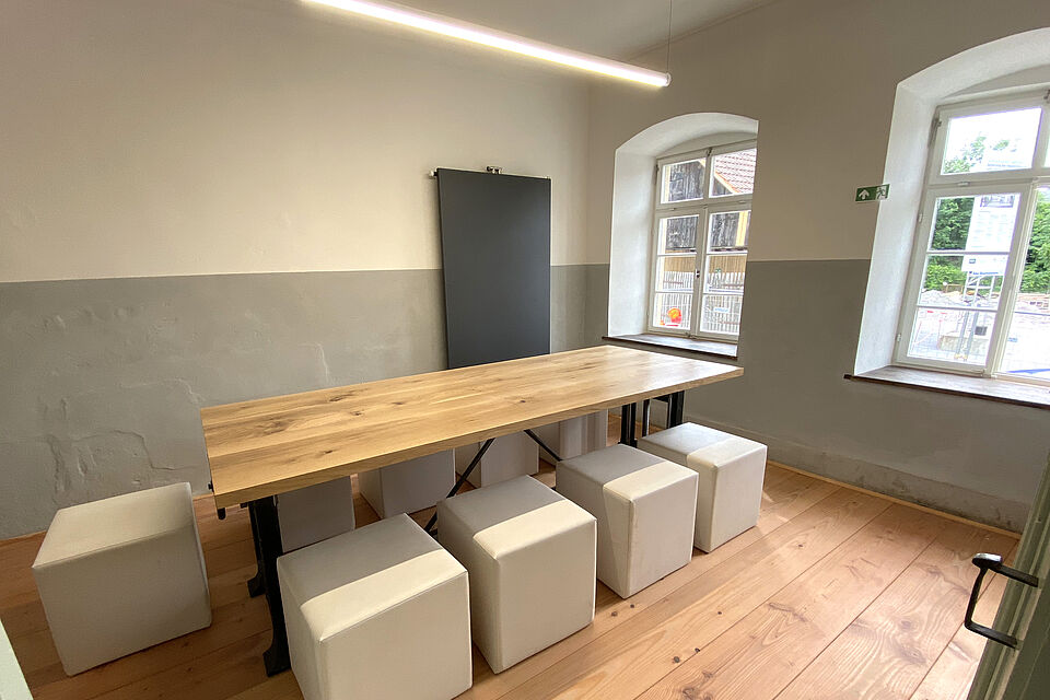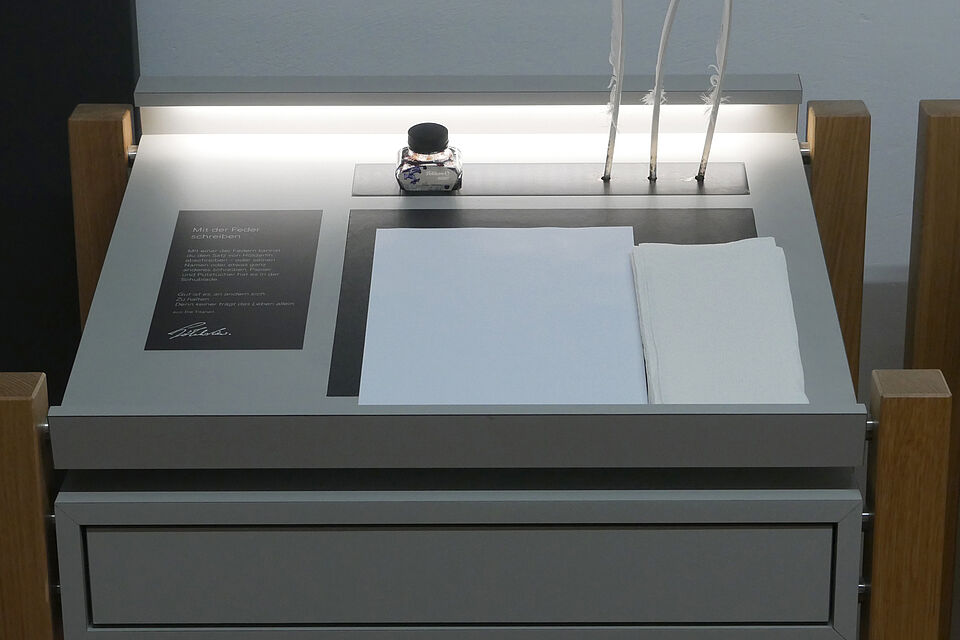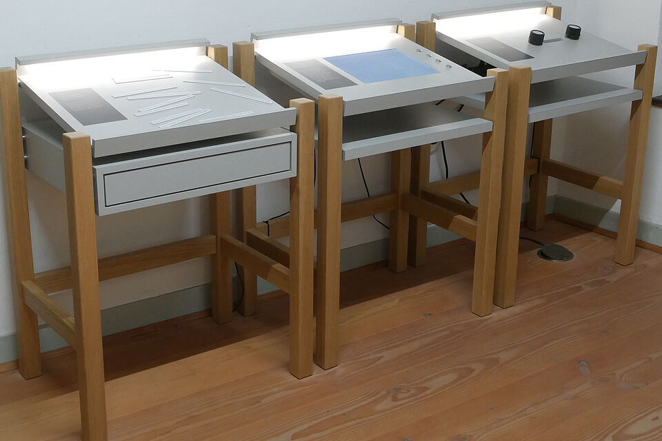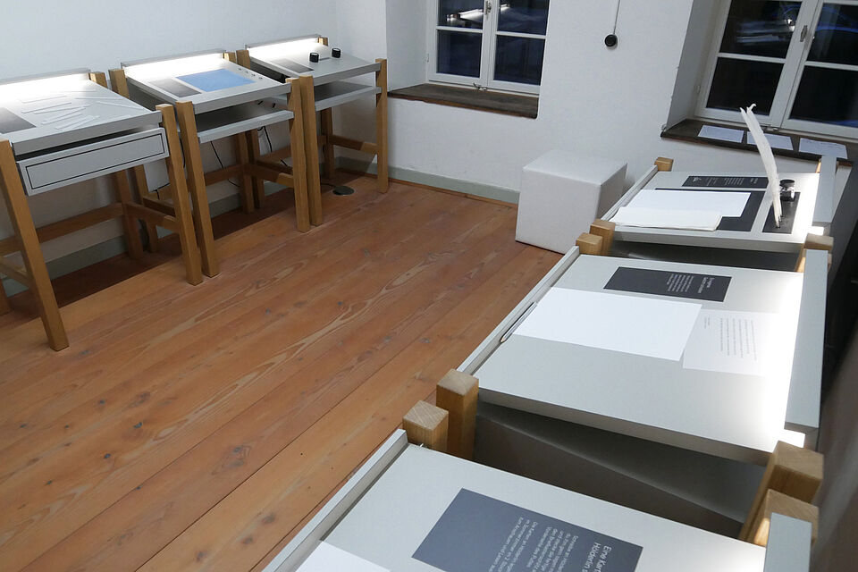 Das Hölderlinhaus in Lauffen wurde umfassend saniert und durch einen Anbau ergänzt. Für die Gestaltung der beiden Räume der Museumspädagogik wurde Raumeinsichten beauftragt. Ein Raum dient als Besprechungsraum und verfügt nun über einen manuell höhenverstellbaren Tisch. Im zweiten Raum laden 6 Pulte mit individuellen Angeboten für die Besucher ein.